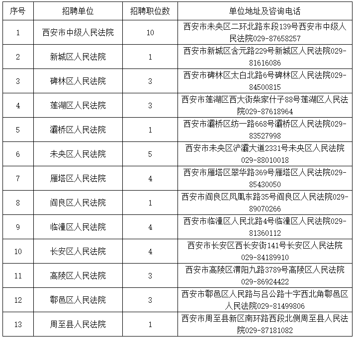 西安法院2023年度面向社會公開招聘聘用制書記員職位表