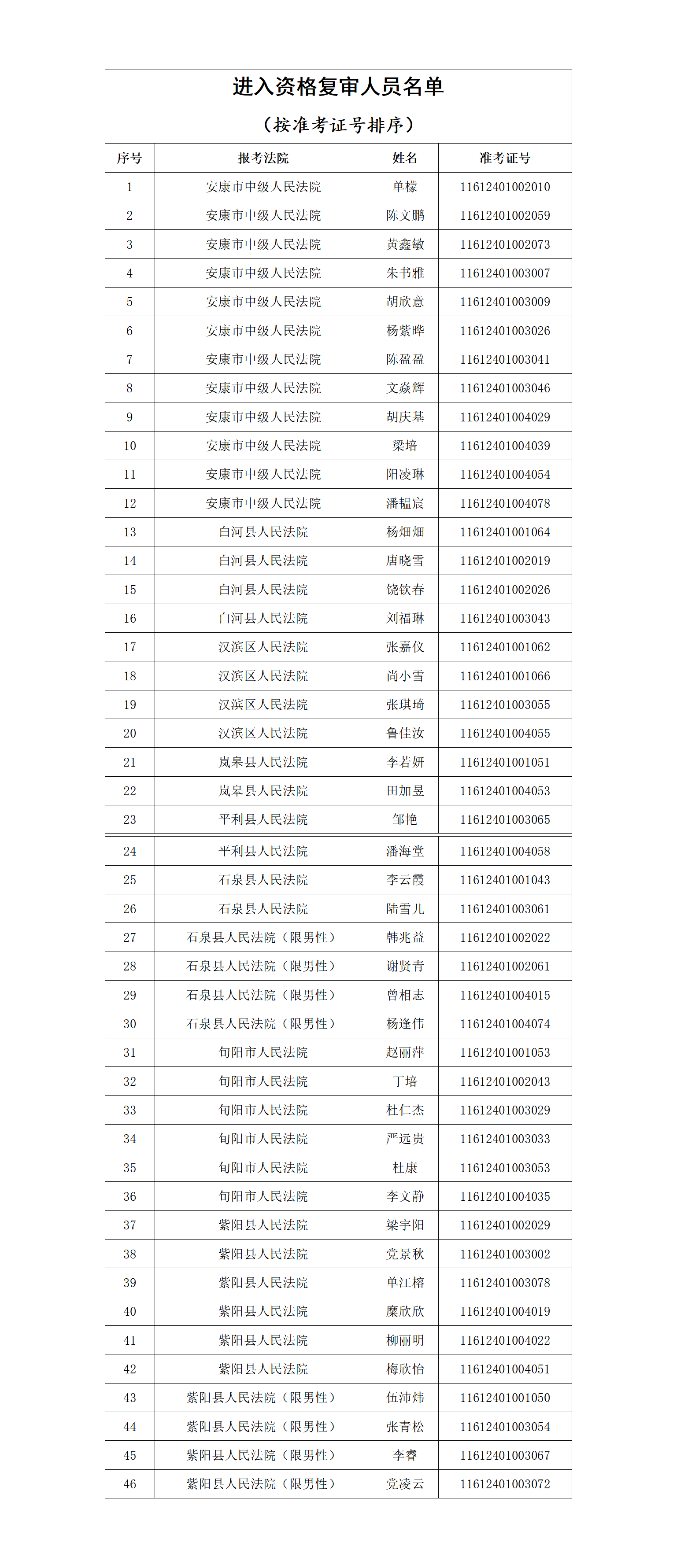 資格復(fù)審工作結(jié)束3日內(nèi),進入面試人員名單在安康市中級人民法院及陜西秦潤人力資源集團有限公司官網(wǎng)和微信公眾號上進行公布。
